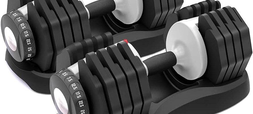 ATIVAFIT verstellbare Kurzhantel – Hantel mit Anti-Rutsch-Griff, einstellbaren Hantelscheiben und Ablageschale, platzsparende Hantel fuer Frauen und Maenner, Training und Fitness zu Hause(1pcs/2pcs) Verstellbare Hanteln 25 kg in 2pcs, 2 Stueck