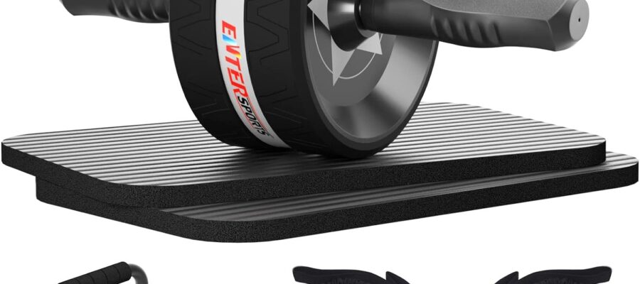 EnterSports Bauchroller, 6-in-1 Bauchtrainer mit Fitnessband, Liegestütze, Kniematte, Fitness Geräte Bauchmuskeltrainer ab wheel set, ideal für Männer und Frauen zu Hause zu trainieren ☜ 【6-IN-1 Bauchtrainer Set】In der Packung enthaelt